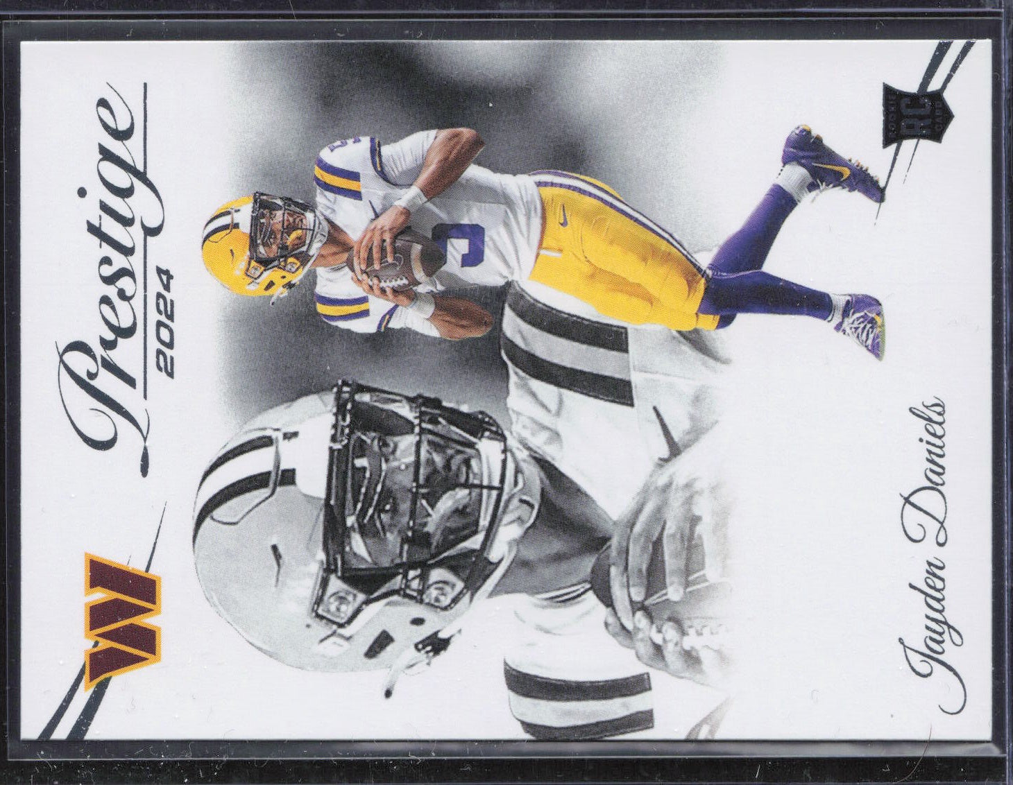 You will receive a Near Mint or Better 2024 Panini Prestige Jayden Daniels Washington Commanders cardThank you for choosing CROWN COLLECTIBLES. We have a large selection of collectibles including: sports cards, TCG, comics, video games, toys & figs, vinyl, collecting supplies, AND MORE! We are working on a website, but until then, contact us on our Facebook if you're looking for something not on our eBay store and we'll list it!Our Shipping PolicyWe have several methods of shipping for trading cards. All cards under $20 are shipped via eBay standard shipping. Cards over $20, especially graded/slabbed cards, are shipped via USPS Ground Advantage. Buyers pay for shipping so that we can affordably continue to package/protect/ship your cards to you in quality packaging. Options for Expedited shipping are also available at checkout. Note to all customers: To qualify for combined shipping, please place your items into the shopping cart, then send a note so that we can adjust shippin